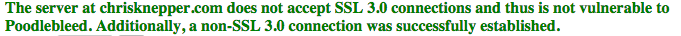 There’s also a handy tool to check if your server is vulnerable. It it isn’t you’ll get happy green output like this: