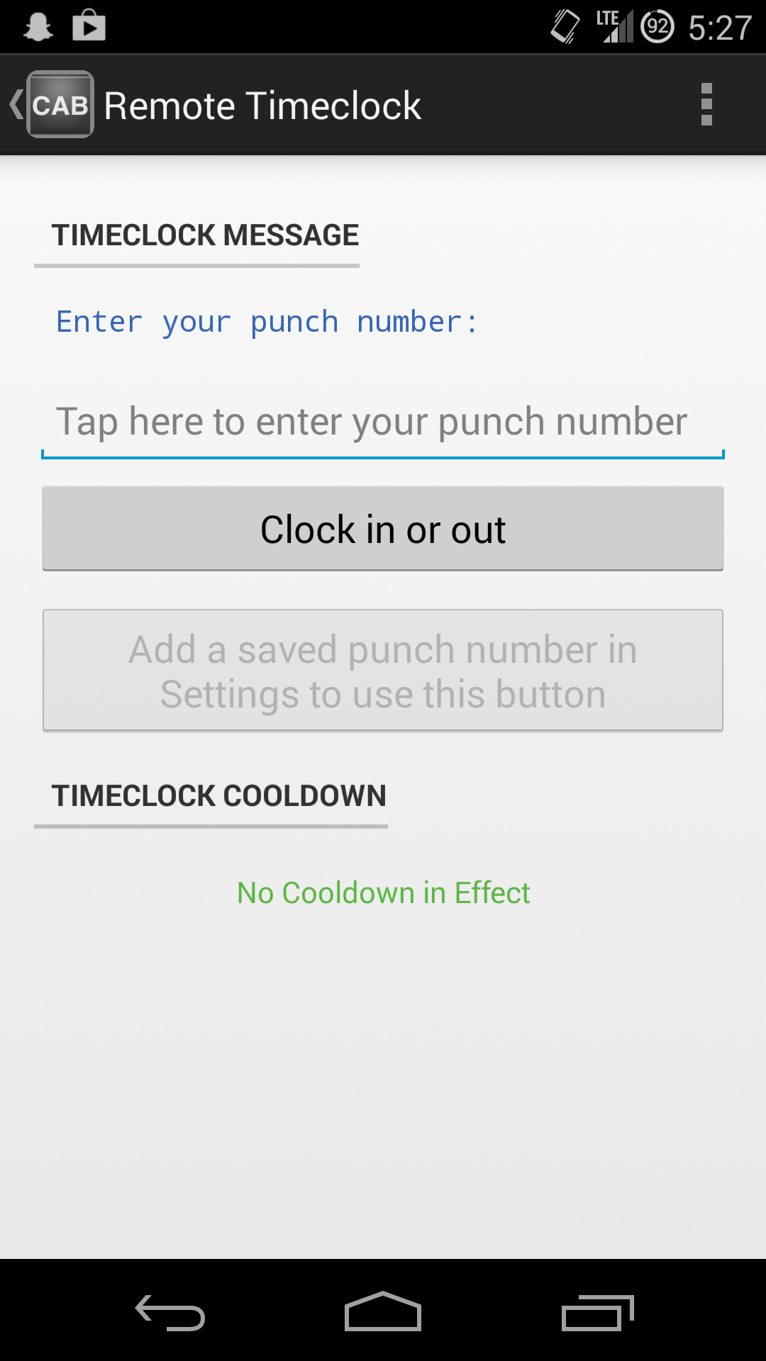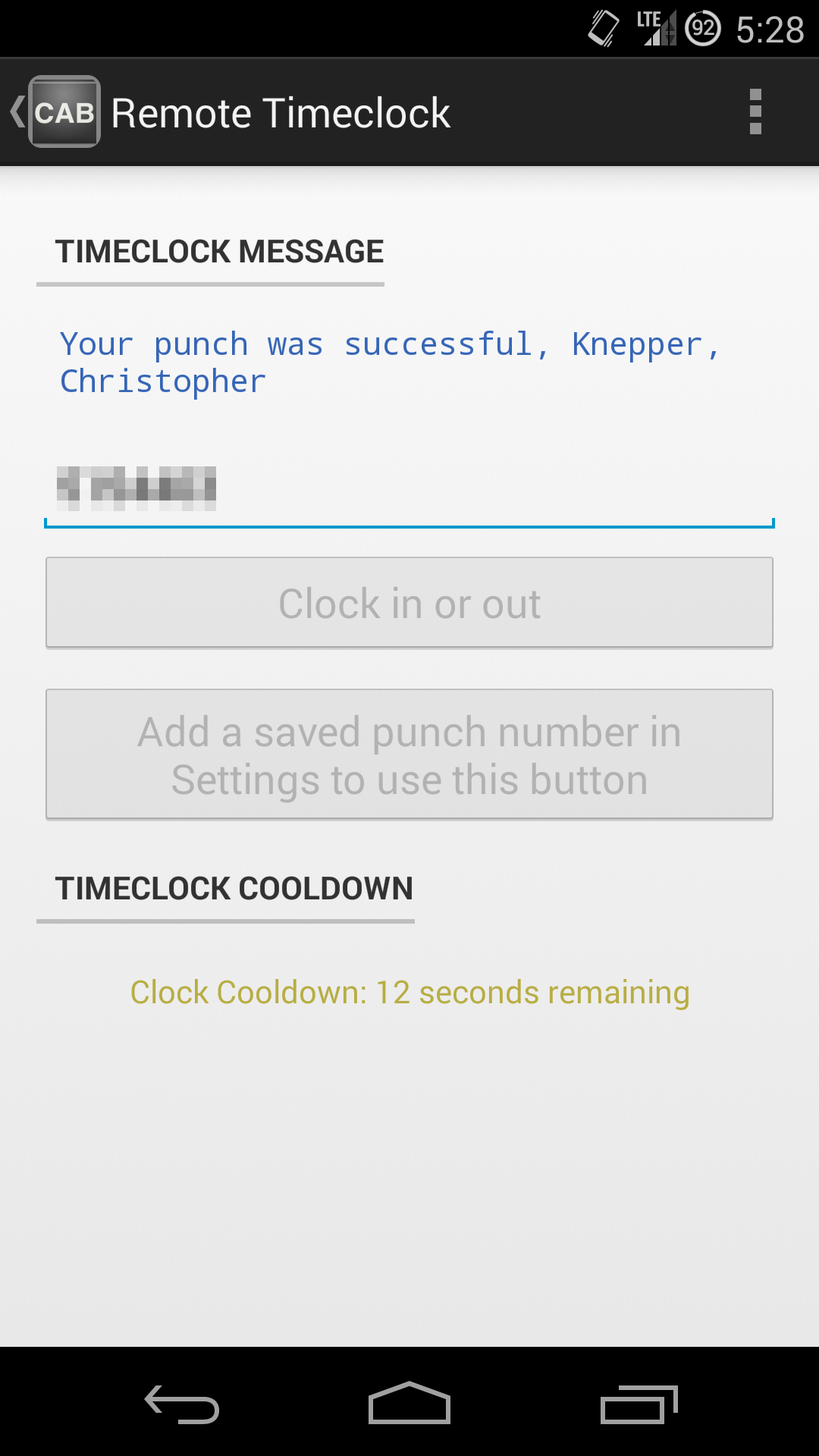 CAB Manager is an app which enables staff members of CAB to clock in and out remotely. The app utilizes a web service which interfaces with RIT’s systems to register clock-ins and outs. The most unique part about the app is a class written by me, which allows any Android Activity to make an HTTP request on a separate thread and implement a custom callback to handle the response. It also authenticates CAB staff via CAB’s internal login method, can remember a frequently used badge number for the employee (via Android’s SystemPreferences API), and includes a cooldown feature to eliminate accidental clocking-in and out.