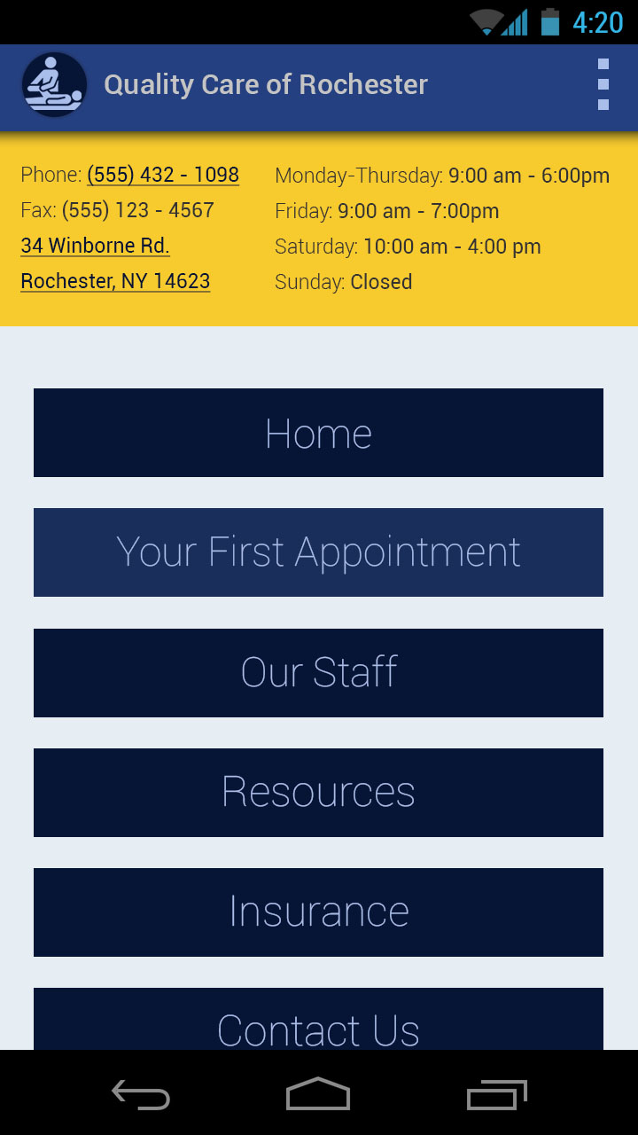 Quality Care of a Rochester is a physical therapy practice. It isn’t real, but a student team including me had to make a website as if it were. Many people access the web via mobile devices, so we also conceived a responsive layout as a companion to the desktop concept.